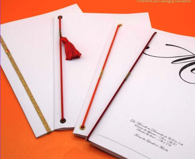 • Étiquettes montées avec ruban ou cordelière, qui ajoutent un jeu de matière